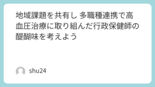 資料 保護中: 地域課題を共有し 多職種連携で高血圧治療に取り組んだ行政保健師の醍醐味を考えよう このコンテンツはパスワードで保護されています。閲覧するには以下にパスワードを入力してください。 パスワード: 2026.03.19 資料