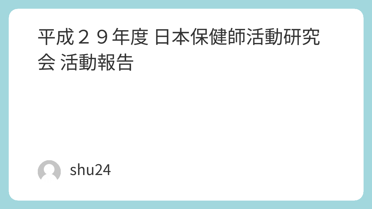 保護中: 平成29年度 日本保健師活動研究会 活動報告