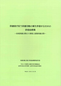 保健師が担う保健活動の質を評価するための評価指標集 -地域保健分野の6領域と産業保健分野- 会員からの情報 2026.03.232026.03.24 保健活動の質の評価指標開発研究班 *この手引きは平成24年度厚生労働科学研究費補助金 政策科学総合研究事業(政策科学推進研究事業)の補助金により作成しました。 ◆この手引きのPDF版を無料にて配布しています。PDF版をご希望の方は下記よりダウンロードしてください。PDF版をご希望の方は「会員専用ページ」よりダウンロードしてください。 ≫≫「会員専用ページ」 *パスワードが必要です。